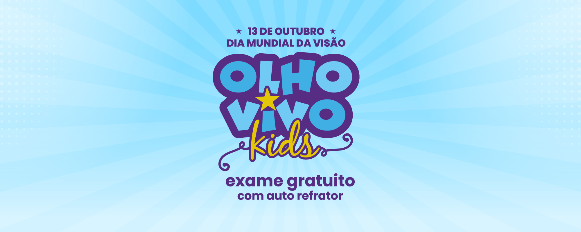 O Olho Vivo Kids será realizado na próxima quinta-feira (13/10), das 9h às 16h, na Praça de Alimentação Norte do Shopping Conjunto Nacional. Embora a ação seja voltada para as crianças, não haverá qualquer limitação para os adultos que quiserem se submeter ao exame.